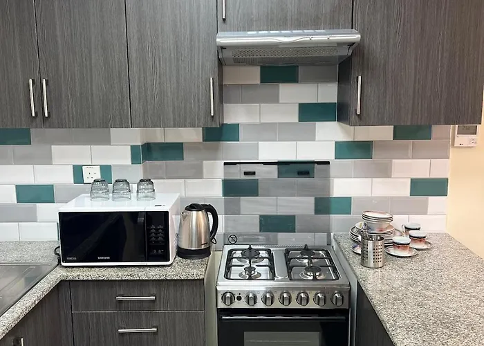 Take delight in a full kitchen provided at the apartment and complete with coffee and tea making machines, a fridge, and an oven for your convenience. Sharjah airport is 15-minute drive away. A swimming pool can be found on the premises.